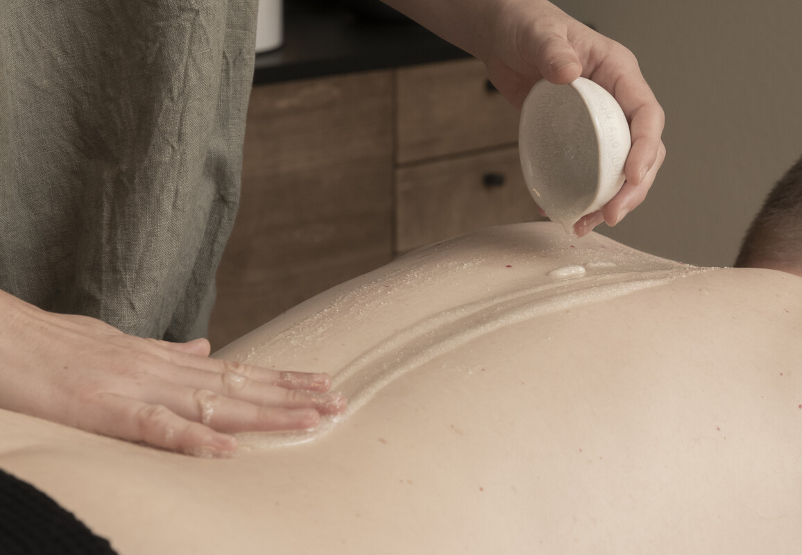 Zusatz: Rücken-Peelingmassage mit Waschung / +15 Minuten.