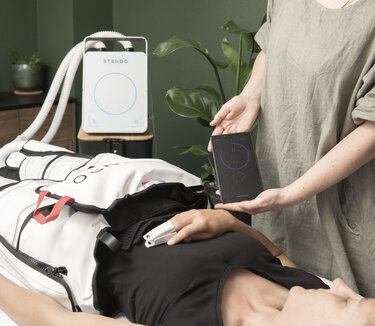 STENDO® Body basiert auf der Forschung zum Medizin-Nobelpreis 1998. Du liegst in Manschetten, die Pulswellen synchron zu Deinem Herzschlag abgeben. Diese kardiosynchrone Stimulation regt die Produktion von Stickstoffmonoxid (NO) in den Endothelzellen an. Dies fördert systemische Regeneration und wird auch im Profisport eingesetzt.